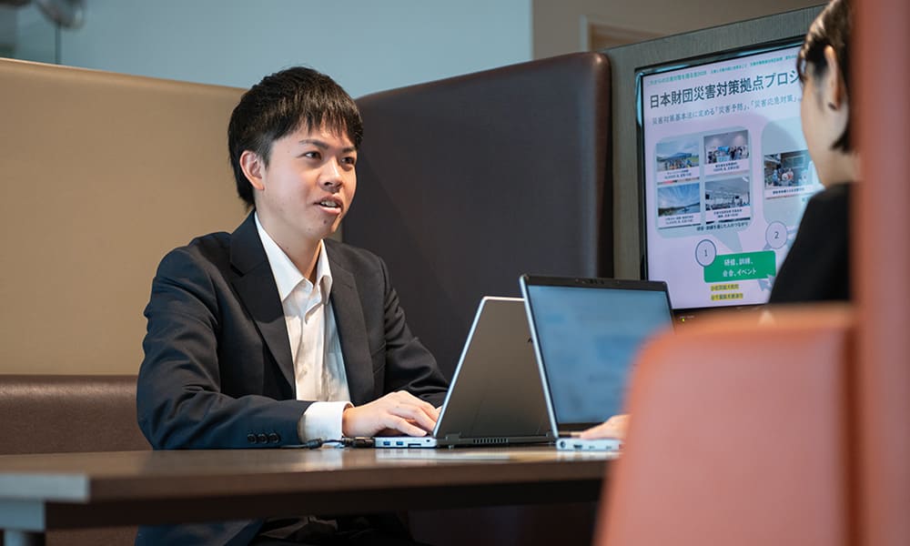 日本財団は一見すると硬い組織に見られがちですが、民間の組織なので意思決定が速いです。また、あまねく平等にではなく、きめ細かく支援が必要な人や場所に、優先順位を持って支援先や事業を考えられることも強みであると感じます。被災地を見て感じたこと、被災者との対話の中で気づいたことを基に、時には自由で柔軟な発想を活かしながら、支援の的確性を見出し、実現に向けて動けることに、自身の成長を感じています。